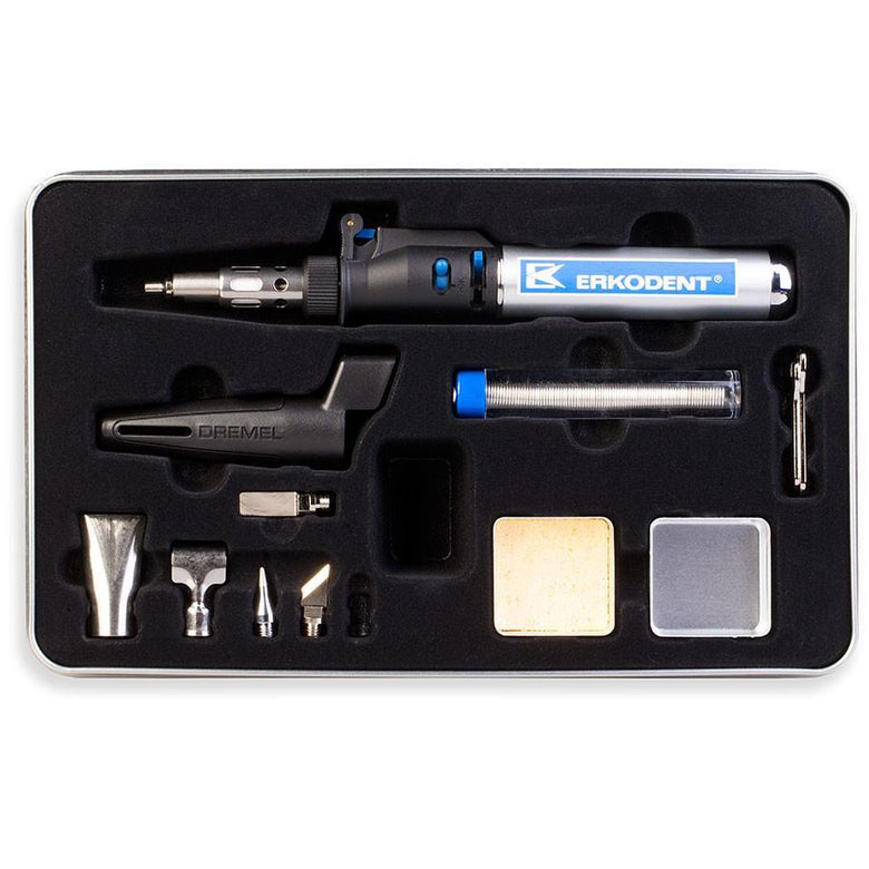 This heating instrument is intended for use in the precise softening of acrylic materials, or to shine and polish thermoformed appliances produced from Erkoflex-82, Erkoflex-95, and Erkoloc-pro. The hot air pen heats without flame, thereby eliminating soot or blackening.