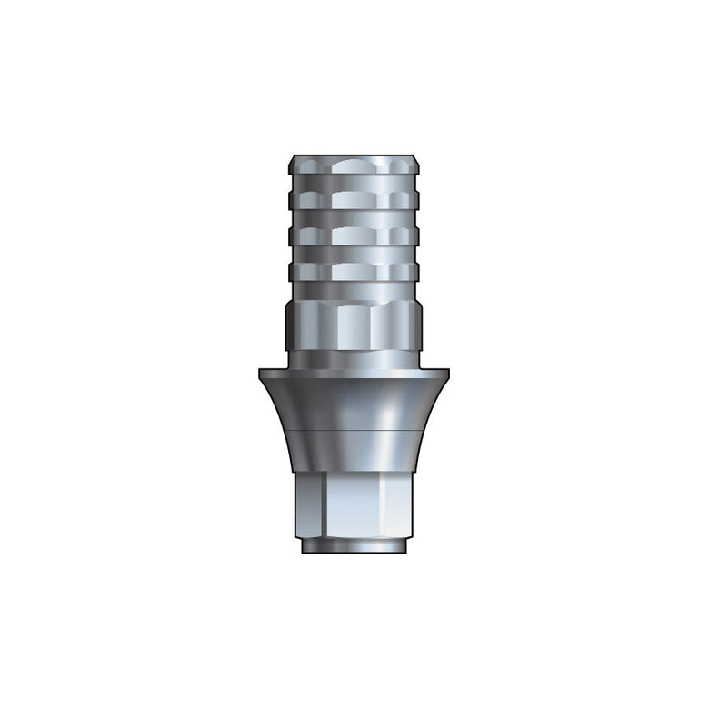 Inclusive® Titanium Abutments are premanufactured components made of titanium alloy. They have a prefabricated precision interface (implant-abutment connection) and are for fabrication of patient-specific, custom abutments using CAD/CAM technology. Each patient-specific abutment is individually prescribed by a clinician and manufactured by Prismatik Dentalcraft, Inc. or a qualified validated milling center.