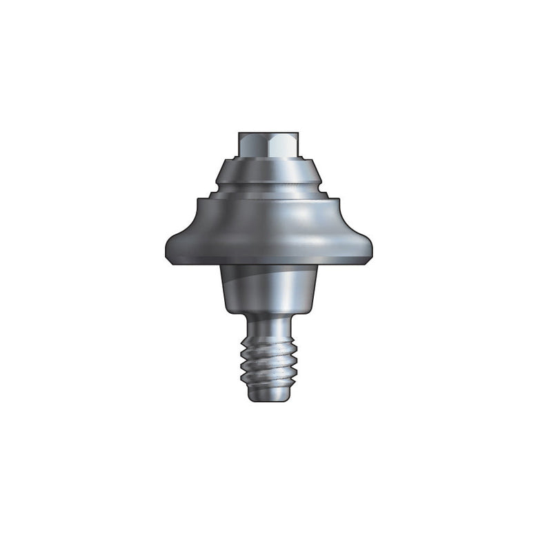 Straight multi-unit abutments lack any anti-rotational features at the implant-abutment interface. The apical portion of a straight multi-unit abutment is threaded for attachment with the internal connection of a seated implant. For abutment delivery, the occlusal surface features a male hex head compatible with the Inclusive Multi-Unit Driver.