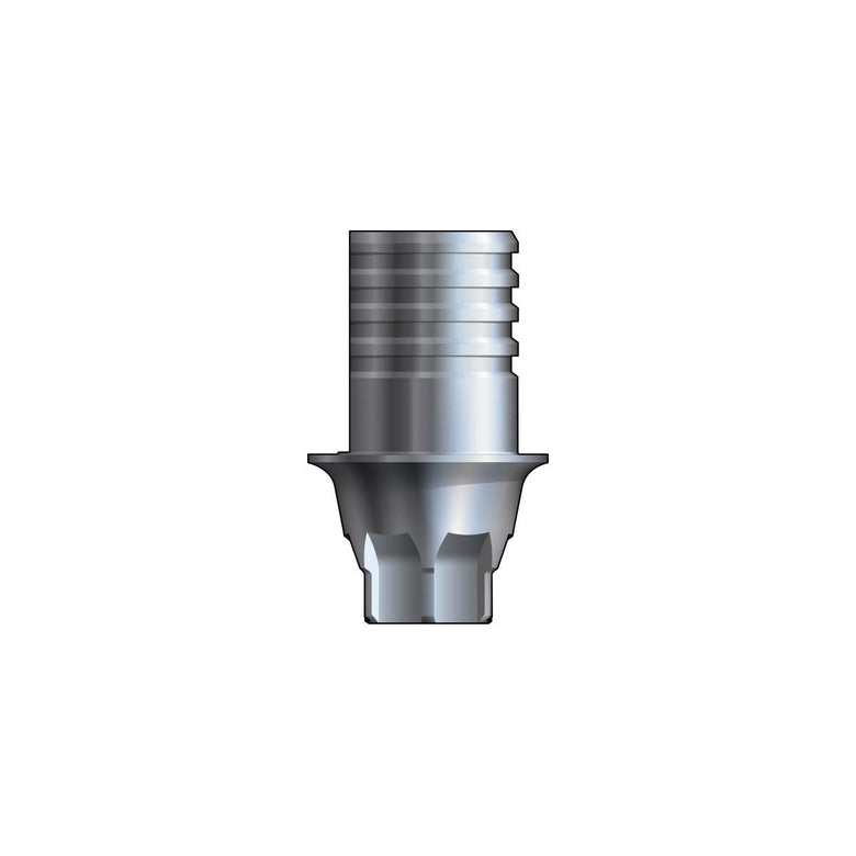 Inclusive Titanium Abutments are prefabricated, screw-retained intraoral abutments designed to be connected directly to an endosseous implant for retention of a cemented dental prosthesis. They may be used for single- and multiple-tooth restorations. Titanium abutments are precisely machined from titanium alloy and attached to the implant fixture with a titanium screw. For use in any region of the mouth, they contain a standard, circular emergence profile and straight abutment body available in 4.5 mm and 6 mm vertical height options. Each abutment is specific to the restorative platform of the seated implant.