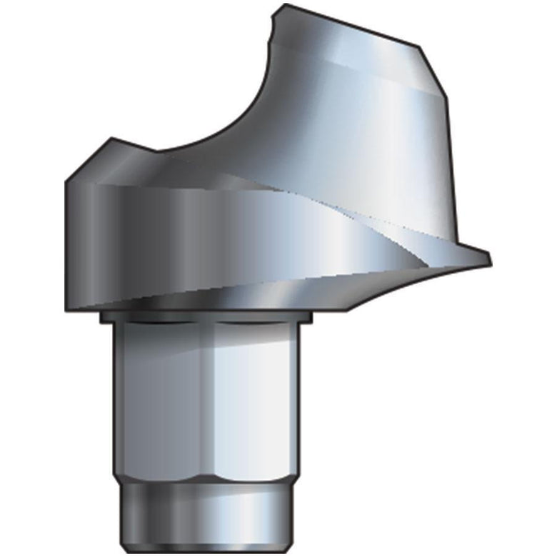 Straight multi-unit abutments lack any anti-rotational features at the implant-abutment interface. The apical portion of a straight multi-unit abutment is threaded for attachment with the internal connection of a seated implant. For abutment delivery, the occlusal surface features a male hex head compatible with the Inclusive Multi-Unit Driver.