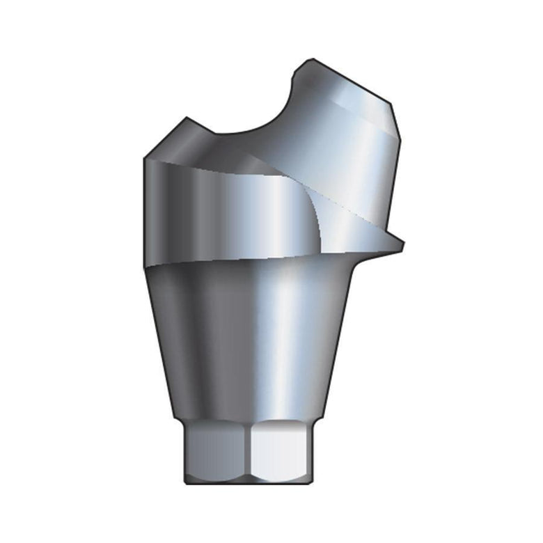 Angled multi-unit abutments of 17 degrees or 30 degrees enable clinicians to compensate for the divergence of seated implants or to otherwise accommodate an angled path of insertion. Angled multi-unit abutments feature an anti-rotational connection interface specific to the matching implant platform, and are attached to the implant fixture with an angled multi-unit abutment screw.