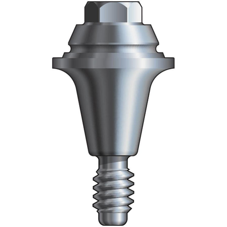 Straight multi-unit abutments lack any anti-rotational features at the implant-abutment interface. The apical portion of a straight multi-unit abutment is threaded for attachment with the internal connection of a seated implant. For abutment delivery, the occlusal surface features a male hex head compatible with the Inclusive Multi-Unit Driver.