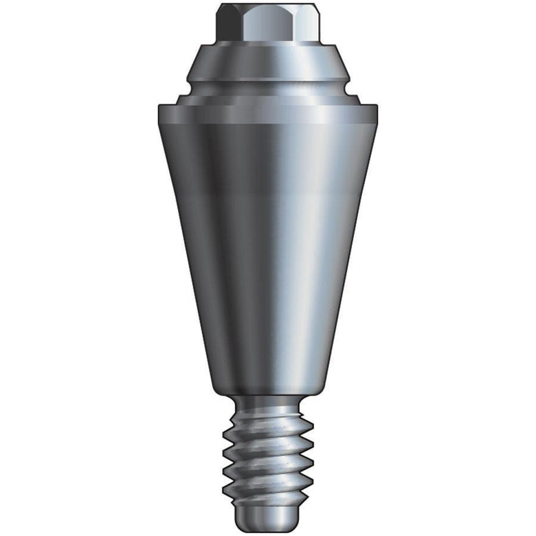 Straight multi-unit abutments lack any anti-rotational features at the implant-abutment interface. The apical portion of a straight multi-unit abutment is threaded for attachment with the internal connection of a seated implant. For abutment delivery, the occlusal surface features a male hex head compatible with the Inclusive Multi-Unit Driver.