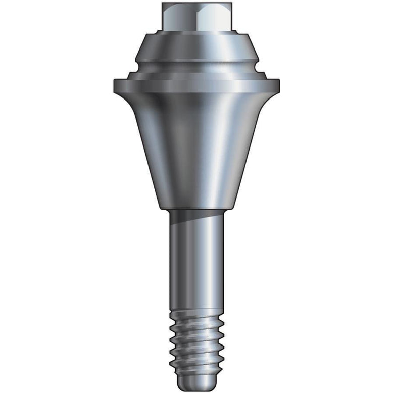 Straight multi-unit abutments lack any anti-rotational features at the implant-abutment interface. The apical portion of a straight multi-unit abutment is threaded for attachment with the internal connection of a seated implant. For abutment delivery, the occlusal surface features a male hex head compatible with the Inclusive Multi-Unit Driver.