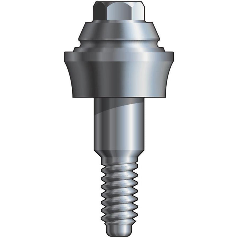 Straight multi-unit abutments lack any anti-rotational features at the implant-abutment interface. The apical portion of a straight multi-unit abutment is threaded for attachment with the internal connection of a seated implant. For abutment delivery, the occlusal surface features a male hex head compatible with the Inclusive Multi-Unit Driver.