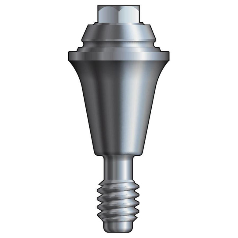 Straight multi-unit abutments lack any anti-rotational features at the implant-abutment interface. The apical portion of a straight multi-unit abutment is threaded for attachment with the internal connection of a seated implant. For abutment delivery, the occlusal surface features a male hex head compatible with the Inclusive Multi-Unit Driver.