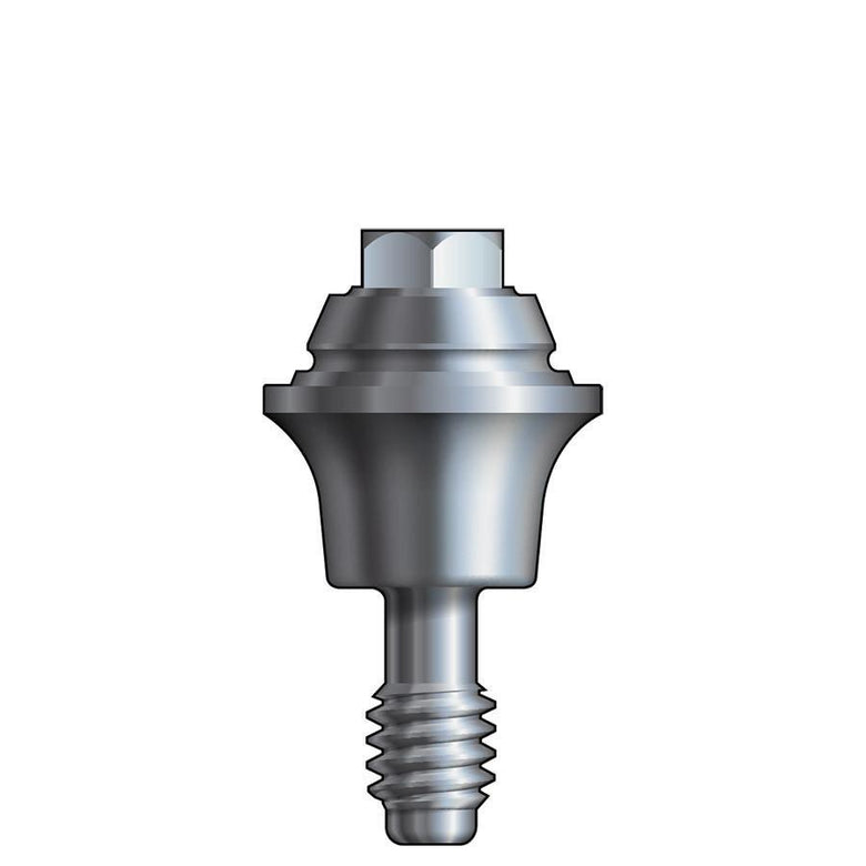Straight multi-unit abutments lack any anti-rotational features at the implant-abutment interface. The apical portion of a straight multi-unit abutment is threaded for attachment with the internal connection of a seated implant. For abutment delivery, the occlusal surface features a male hex head compatible with the Inclusive Multi-Unit Driver.