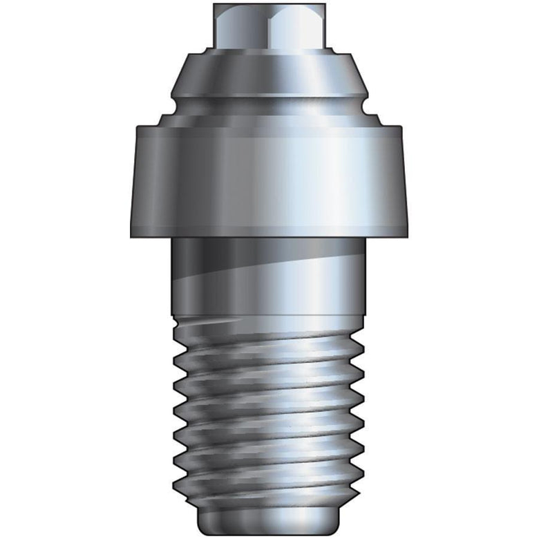 Straight multi-unit abutments lack any anti-rotational features at the implant-abutment interface. The apical portion of a straight multi-unit abutment is threaded for attachment with the internal connection of a seated implant. For abutment delivery, the occlusal surface features a male hex head compatible with the Inclusive Multi-Unit Driver.