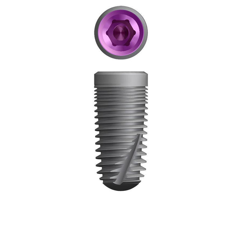 Each Inclusive Tapered Implant is packaged with a Titanium Carrier and a Cover Screw. The Titanium Carrier is designed for easy delivery and is color-coded by implant diameter. The Cover Screw is provided for use when following a two-stage surgical protocol and is color-coded by implant platform.