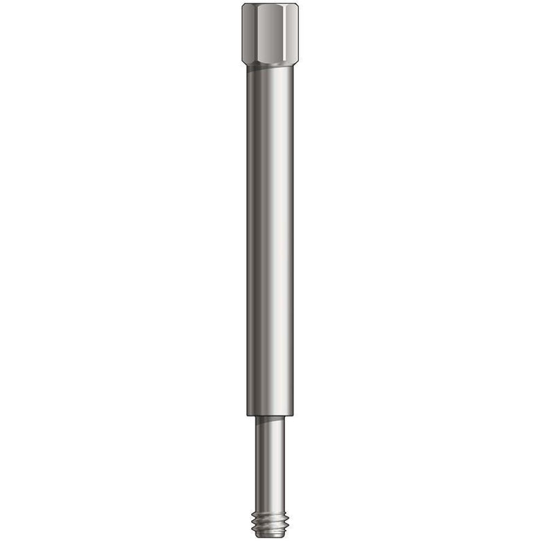 Inclusive Guide Pins are threaded fasteners used to attach implant prosthetic components to dental implant fixtures or implant analogs on a temporary or long-term basis. Each guide pin is precisely machined from titanium alloy, and is specific to the system or the restorative platform of the seated implant. The occlusal surface of the guide pin contains a female instrumentation port compatible with the restorative driver recommended by the implant manufacturer.