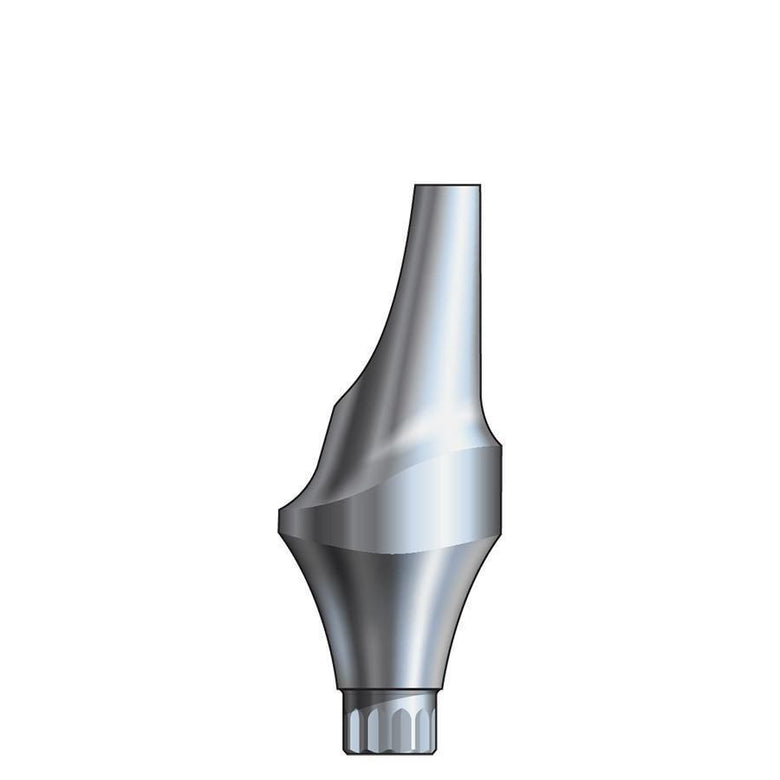 Inclusive Titanium Esthetic Abutments are prefabricated, screw-retained intraoral abutments intended to be connected directly to an endosseous implant for retention of a cemented dental prosthesis. They may be indicated for single- and multiple-tooth restorations. Titanium esthetic abutments are precisely machined from titanium alloy and packaged NON-STERILE. They are attached to the implant fixture with a titanium screw. Unlike the circular emergence profile of standard stock abutments, esthetic abutments are manufactured with a tapered emergence profile for more natural-looking contouring of the soft tissue at the implant site. Each esthetic abutment is specific to the restorative platform of the seated implant, and anatomically designed for the connection site’s region on the ridge (anterior or posterior). In addition to the standard, straight abutment body, angled abutment bodies, produced with a 15 degree slope of one hemisphere to compensate for an undesirable path of insertion resulting from excessive implant angulation, are available.