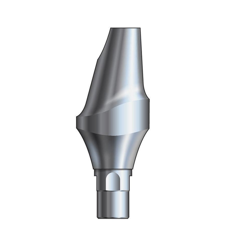 Inclusive Titanium Esthetic Abutments are prefabricated, screw-retained intraoral abutments intended to be connected directly to an endosseous implant for retention of a cemented dental prosthesis. They may be indicated for single- and multiple-tooth restorations. Titanium esthetic abutments are precisely machined from titanium alloy and packaged NON-STERILE. They are attached to the implant fixture with a titanium screw. Unlike the circular emergence profile of standard stock abutments, esthetic abutments are manufactured with a tapered emergence profile for more natural-looking contouring of the soft tissue at the implant site. Each esthetic abutment is specific to the restorative platform of the seated implant, and anatomically designed for the connection site’s region on the ridge (anterior or posterior). In addition to the standard, straight abutment body, angled abutment bodies, produced with a 15 degree slope of one hemisphere to compensate for an undesirable path of insertion resulting from excessive implant angulation, are available.