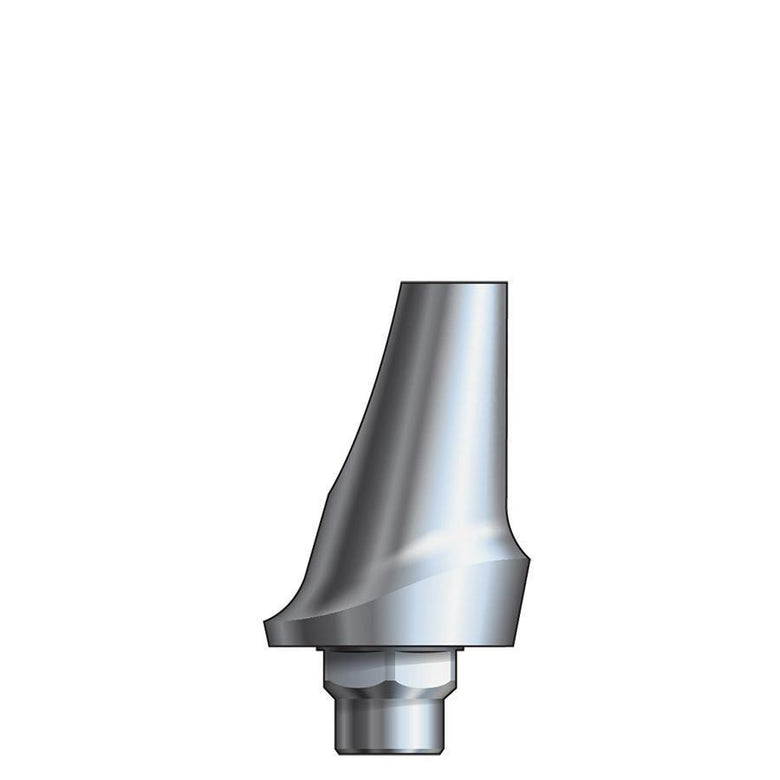 Inclusive Titanium Esthetic Abutments are prefabricated, screw-retained intraoral abutments intended to be connected directly to an endosseous implant for retention of a cemented dental prosthesis. They may be indicated for single- and multiple-tooth restorations. Titanium esthetic abutments are precisely machined from titanium alloy and packaged NON-STERILE. They are attached to the implant fixture with a titanium screw. Unlike the circular emergence profile of standard stock abutments, esthetic abutments are manufactured with a tapered emergence profile for more natural-looking contouring of the soft tissue at the implant site. Each esthetic abutment is specific to the restorative platform of the seated implant, and anatomically designed for the connection site’s region on the ridge (anterior or posterior). In addition to the standard, straight abutment body, angled abutment bodies, produced with a 15 degree slope of one hemisphere to compensate for an undesirable path of insertion resulting from excessive implant angulation, are available.