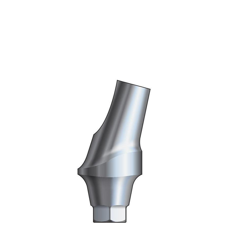 Inclusive Titanium Esthetic Abutments are prefabricated, screw-retained intraoral abutments intended to be connected directly to an endosseous implant for retention of a cemented dental prosthesis. They may be indicated for single- and multiple-tooth restorations. Titanium esthetic abutments are precisely machined from titanium alloy and packaged NON-STERILE. They are attached to the implant fixture with a titanium screw. Unlike the circular emergence profile of standard stock abutments, esthetic abutments are manufactured with a tapered emergence profile for more natural-looking contouring of the soft tissue at the implant site. Each esthetic abutment is specific to the restorative platform of the seated implant, and anatomically designed for the connection site’s region on the ridge (anterior or posterior). In addition to the standard, straight abutment body, angled abutment bodies, produced with a 15 degree slope of one hemisphere to compensate for an undesirable path of insertion resulting from excessive implant angulation, are available.