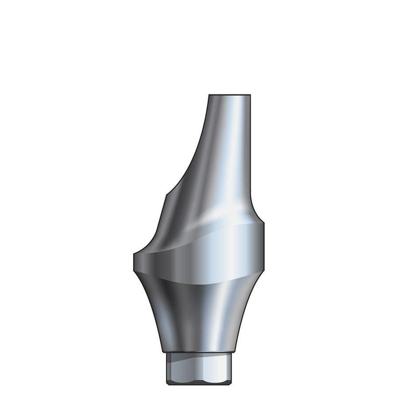 Inclusive Titanium Esthetic Abutments are prefabricated, screw-retained intraoral abutments intended to be connected directly to an endosseous implant for retention of a cemented dental prosthesis. They may be indicated for single- and multiple-tooth restorations. Titanium esthetic abutments are precisely machined from titanium alloy and packaged NON-STERILE. They are attached to the implant fixture with a titanium screw. Unlike the circular emergence profile of standard stock abutments, esthetic abutments are manufactured with a tapered emergence profile for more natural-looking contouring of the soft tissue at the implant site. Each esthetic abutment is specific to the restorative platform of the seated implant, and anatomically designed for the connection site’s region on the ridge (anterior or posterior). In addition to the standard, straight abutment body, angled abutment bodies, produced with a 15 degree slope of one hemisphere to compensate for an undesirable path of insertion resulting from excessive implant angulation, are available.