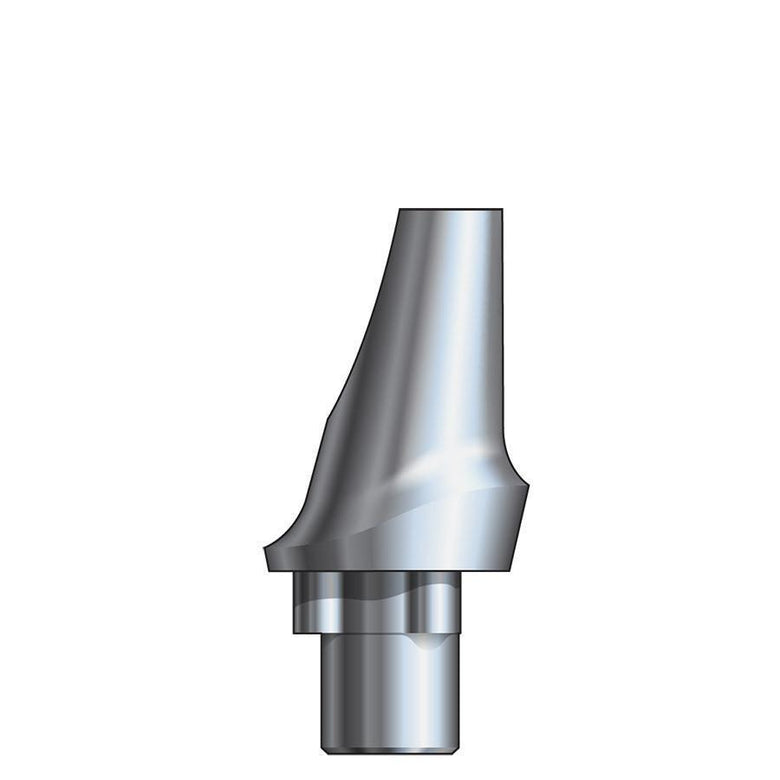 Inclusive Titanium Esthetic Abutments are prefabricated, screw-retained intraoral abutments intended to be connected directly to an endosseous implant for retention of a cemented dental prosthesis. They may be indicated for single- and multiple-tooth restorations. Titanium esthetic abutments are precisely machined from titanium alloy and packaged NON-STERILE. They are attached to the implant fixture with a titanium screw. Unlike the circular emergence profile of standard stock abutments, esthetic abutments are manufactured with a tapered emergence profile for more natural-looking contouring of the soft tissue at the implant site. Each esthetic abutment is specific to the restorative platform of the seated implant, and anatomically designed for the connection site’s region on the ridge (anterior or posterior). In addition to the standard, straight abutment body, angled abutment bodies, produced with a 15 degree slope of one hemisphere to compensate for an undesirable path of insertion resulting from excessive implant angulation, are available.