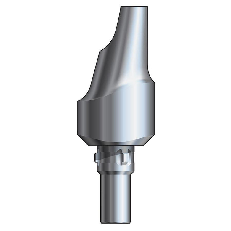 Inclusive Titanium Esthetic Abutments are prefabricated, screw-retained intraoral abutments intended to be connected directly to an endosseous implant for retention of a cemented dental prosthesis. They may be indicated for single- and multiple-tooth restorations. Titanium esthetic abutments are precisely machined from titanium alloy and packaged NON-STERILE. They are attached to the implant fixture with a titanium screw. Unlike the circular emergence profile of standard stock abutments, esthetic abutments are manufactured with a tapered emergence profile for more natural-looking contouring of the soft tissue at the implant site. Each esthetic abutment is specific to the restorative platform of the seated implant, and anatomically designed for the connection site’s region on the ridge (anterior or posterior). In addition to the standard, straight abutment body, angled abutment bodies, produced with a 15 degree slope of one hemisphere to compensate for an undesirable path of insertion resulting from excessive implant angulation, are available.