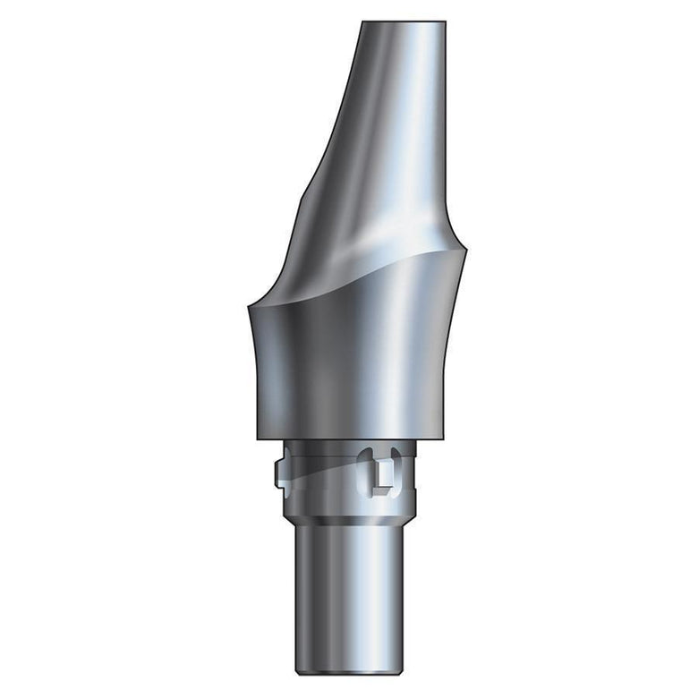 Inclusive Titanium Esthetic Abutments are prefabricated, screw-retained intraoral abutments intended to be connected directly to an endosseous implant for retention of a cemented dental prosthesis. They may be indicated for single- and multiple-tooth restorations. Titanium esthetic abutments are precisely machined from titanium alloy and packaged NON-STERILE. They are attached to the implant fixture with a titanium screw. Unlike the circular emergence profile of standard stock abutments, esthetic abutments are manufactured with a tapered emergence profile for more natural-looking contouring of the soft tissue at the implant site. Each esthetic abutment is specific to the restorative platform of the seated implant, and anatomically designed for the connection site’s region on the ridge (anterior or posterior). In addition to the standard, straight abutment body, angled abutment bodies, produced with a 15 degree slope of one hemisphere to compensate for an undesirable path of insertion resulting from excessive implant angulation, are available.