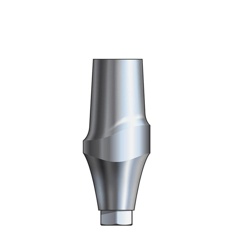 Inclusive Titanium Esthetic Abutments are prefabricated, screw-retained intraoral abutments intended to be connected directly to an endosseous implant for retention of a cemented dental prosthesis. They may be indicated for single- and multiple-tooth restorations. Titanium esthetic abutments are precisely machined from titanium alloy and packaged NON-STERILE. They are attached to the implant fixture with a titanium screw. Unlike the circular emergence profile of standard stock abutments, esthetic abutments are manufactured with a tapered emergence profile for more natural-looking contouring of the soft tissue at the implant site. Each esthetic abutment is specific to the restorative platform of the seated implant, and anatomically designed for the connection site’s region on the ridge (anterior or posterior). In addition to the standard, straight abutment body, angled abutment bodies, produced with a 15 degree slope of one hemisphere to compensate for an undesirable path of insertion resulting from excessive implant angulation, are available.