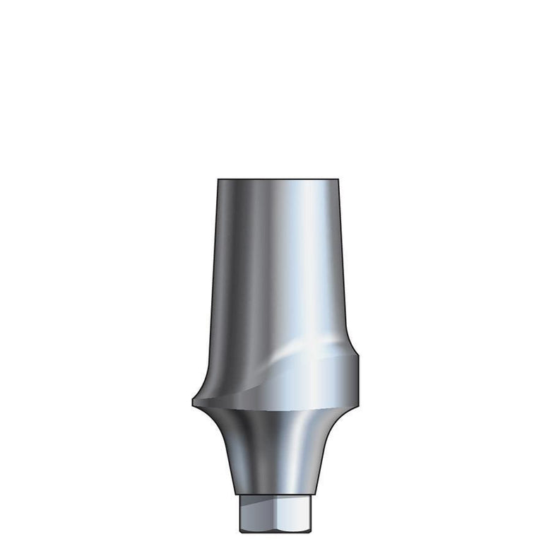 Inclusive Titanium Esthetic Abutments are prefabricated, screw-retained intraoral abutments intended to be connected directly to an endosseous implant for retention of a cemented dental prosthesis. They may be indicated for single- and multiple-tooth restorations. Titanium esthetic abutments are precisely machined from titanium alloy and packaged NON-STERILE. They are attached to the implant fixture with a titanium screw. Unlike the circular emergence profile of standard stock abutments, esthetic abutments are manufactured with a tapered emergence profile for more natural-looking contouring of the soft tissue at the implant site. Each esthetic abutment is specific to the restorative platform of the seated implant, and anatomically designed for the connection site’s region on the ridge (anterior or posterior). In addition to the standard, straight abutment body, angled abutment bodies, produced with a 15 degree slope of one hemisphere to compensate for an undesirable path of insertion resulting from excessive implant angulation, are available.