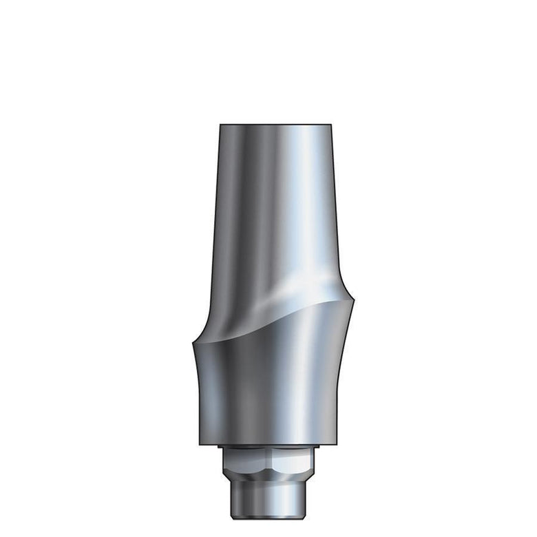 Inclusive Titanium Esthetic Abutments are prefabricated, screw-retained intraoral abutments intended to be connected directly to an endosseous implant for retention of a cemented dental prosthesis. They may be indicated for single- and multiple-tooth restorations. Titanium esthetic abutments are precisely machined from titanium alloy and packaged NON-STERILE. They are attached to the implant fixture with a titanium screw. Unlike the circular emergence profile of standard stock abutments, esthetic abutments are manufactured with a tapered emergence profile for more natural-looking contouring of the soft tissue at the implant site. Each esthetic abutment is specific to the restorative platform of the seated implant, and anatomically designed for the connection site’s region on the ridge (anterior or posterior). In addition to the standard, straight abutment body, angled abutment bodies, produced with a 15 degree slope of one hemisphere to compensate for an undesirable path of insertion resulting from excessive implant angulation, are available.