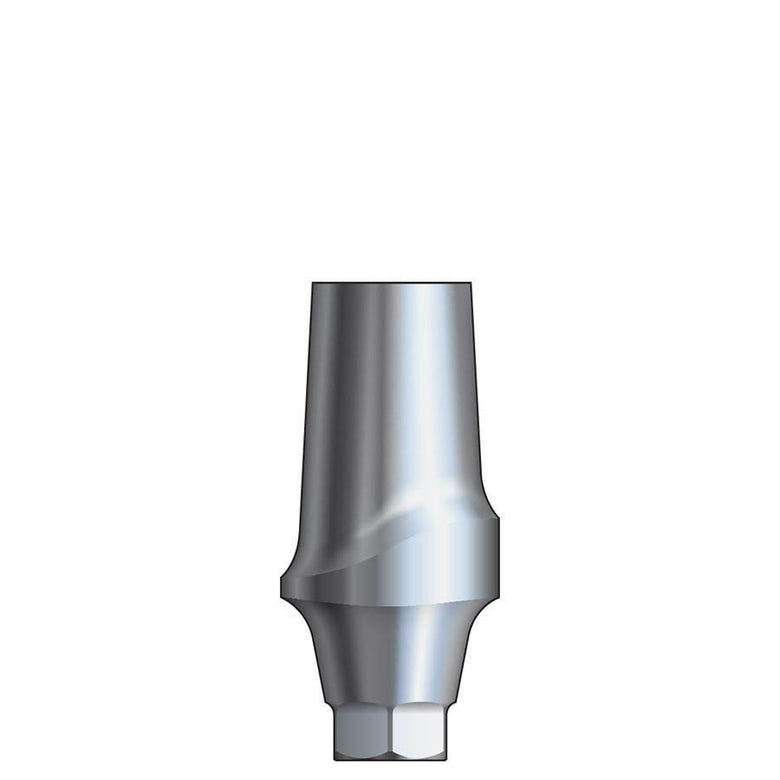 Inclusive Titanium Esthetic Abutments are prefabricated, screw-retained intraoral abutments intended to be connected directly to an endosseous implant for retention of a cemented dental prosthesis. They may be indicated for single- and multiple-tooth restorations. Titanium esthetic abutments are precisely machined from titanium alloy and packaged NON-STERILE. They are attached to the implant fixture with a titanium screw. Unlike the circular emergence profile of standard stock abutments, esthetic abutments are manufactured with a tapered emergence profile for more natural-looking contouring of the soft tissue at the implant site. Each esthetic abutment is specific to the restorative platform of the seated implant, and anatomically designed for the connection site’s region on the ridge (anterior or posterior). In addition to the standard, straight abutment body, angled abutment bodies, produced with a 15 degree slope of one hemisphere to compensate for an undesirable path of insertion resulting from excessive implant angulation, are available.