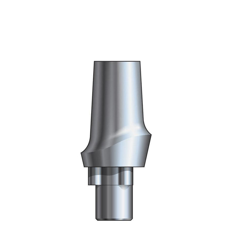 Inclusive Titanium Esthetic Abutments are prefabricated, screw-retained intraoral abutments intended to be connected directly to an endosseous implant for retention of a cemented dental prosthesis. They may be indicated for single- and multiple-tooth restorations. Titanium esthetic abutments are precisely machined from titanium alloy and packaged NON-STERILE. They are attached to the implant fixture with a titanium screw. Unlike the circular emergence profile of standard stock abutments, esthetic abutments are manufactured with a tapered emergence profile for more natural-looking contouring of the soft tissue at the implant site. Each esthetic abutment is specific to the restorative platform of the seated implant, and anatomically designed for the connection site’s region on the ridge (anterior or posterior). In addition to the standard, straight abutment body, angled abutment bodies, produced with a 15 degree slope of one hemisphere to compensate for an undesirable path of insertion resulting from excessive implant angulation, are available.
