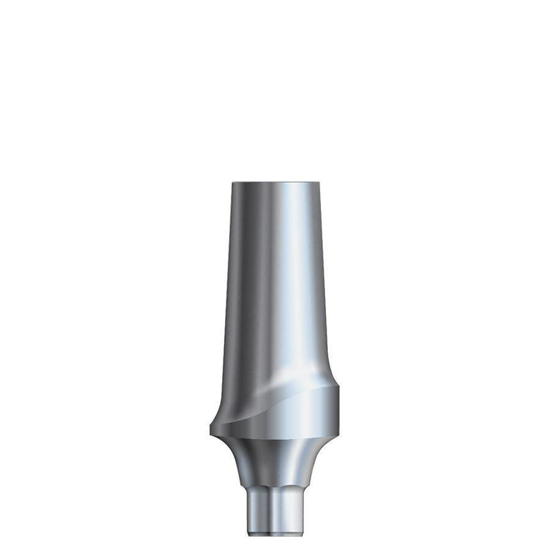 Inclusive Titanium Esthetic Abutments are prefabricated, screw-retained intraoral abutments intended to be connected directly to an endosseous implant for retention of a cemented dental prosthesis. They may be indicated for single- and multiple-tooth restorations. Titanium esthetic abutments are precisely machined from titanium alloy and packaged NON-STERILE. They are attached to the implant fixture with a titanium screw. Unlike the circular emergence profile of standard stock abutments, esthetic abutments are manufactured with a tapered emergence profile for more natural-looking contouring of the soft tissue at the implant site. Each esthetic abutment is specific to the restorative platform of the seated implant, and anatomically designed for the connection site’s region on the ridge (anterior or posterior). In addition to the standard, straight abutment body, angled abutment bodies, produced with a 15 degree slope of one hemisphere to compensate for an undesirable path of insertion resulting from excessive implant angulation, are available.